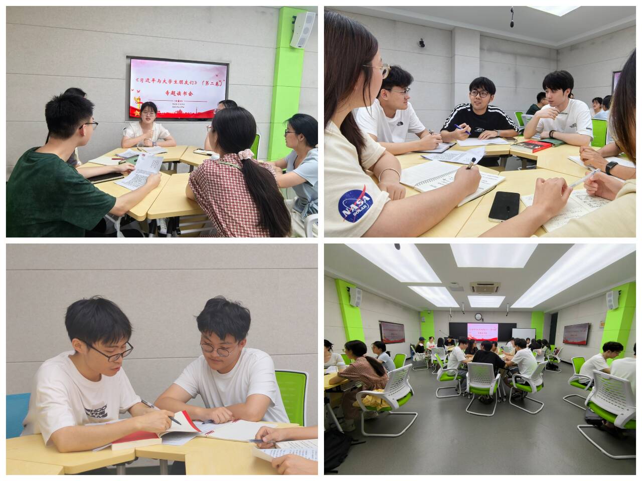 临床医学院“一站式”学生社区专题读书会活动已累计开展五期,本次“医火学堂”图书共读计划(第六期)选取《习近平与大学生朋友们》第二卷第五篇“习书记给我们北舞‘福州班’送来电视机”一文为生动教材,采取分组学习研讨模式,鼓励同学们在朋辈交流中深刻思考、深入领悟。文章以“当年人讲当年事”的形式讲述了习近平同志任福州市委书记时倡导创办北舞“福州班”,利用赴京出差机会与学员们座谈交流、关怀备至,送去电视机等训练设备,并勉励他们学成归来积极投身福州文艺事业建设的故事。