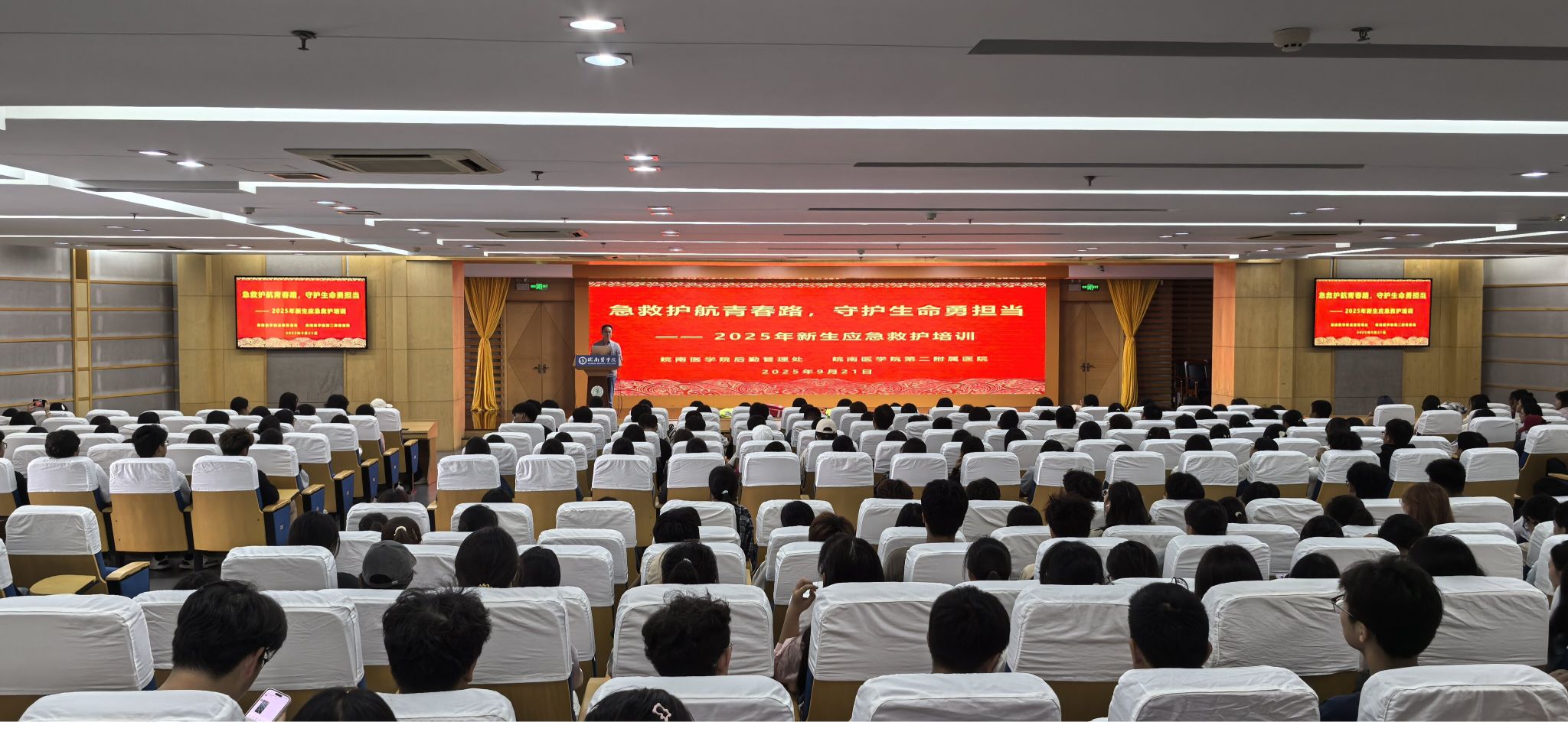 为深入推进学校急救教育试点建设,夯实医学专业新生基础素养,9月21日下午,我校组织开展2025级新生应急救护技能专项培训,为刚踏入医学殿堂的新生们讲授“守护生命”的启蒙一课。